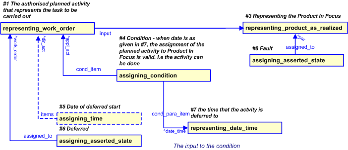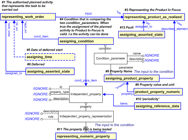 The maintenance task that causes the Product In Focus to change is represented by template representing_work_done, as shown below in #1 of Figure 48, and described in detail in Representing Product In Focus maintenance activity.