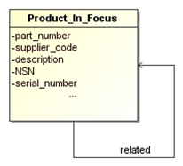 When reporting on a maintenance task performed on a Product In Focus, it is often necessary to report on state of related components that are not necessarily part of the Product In Focus. For example when reporting on work done to an engine, lifing properties on the Auxiliary Power Unit (APU) may be reported. The information required to represent the related Products In Focus can be summarized by the UML class diagram shown in Figure 47. This is a subset of the UML diagrams shown in Figure 5 in Aviation maintenance Business Information Requirements - Message and Figure 7 in Aviation maintenance Business Information Requirements - Information.